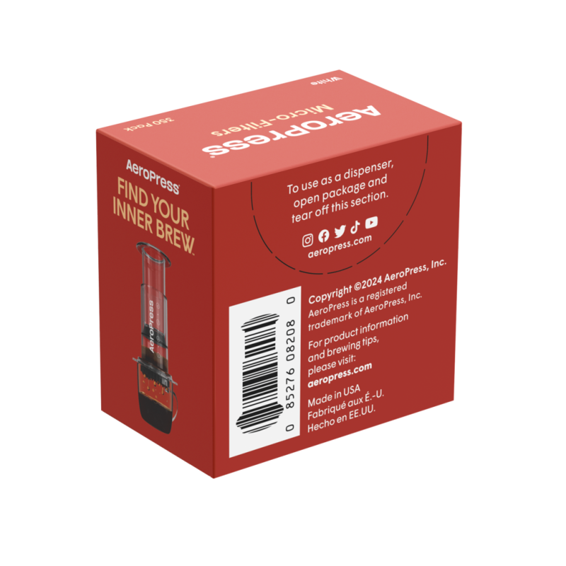 - De originale AeroPress-papirfiltre giver dig en ren og blød kop kaffe uden grums. Filteret sidder i filterskruen og kasseres nemt sammen med kaffen efter brygning. Resultatet er en klar smagsoplevelse, da filteret effektivt sorterer alle partikler fra. Filtrene er biologisk nedbrydelige og kan kommes i komposten. Tip: Skyl altid filteret inden brug for at undgå papirsmag i kaffen.