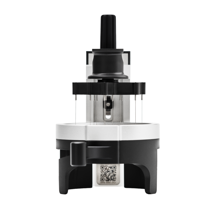 Barista Hustle The AutoComb er et WDT-værktøj som hjælper med en jævn fordeling af kværnet kaffe i portafilteret. AutoComb spinner 12 nåle i høj hastighed, hvilket fluidiserer kaffen og omdanner den til en luftig og homogen masse, klar til tamping. Processen tager under 5 sekunder og sikrer ensartet fordeling, uanset hvordan kaffen er kværnet, eller hvem der bruger værktøjet. AutoComb leveres med masser af reserve-nåle, og alle dele kan nemt udskiftes eller vedligeholdes med de medfølgende unbrakonøgler.