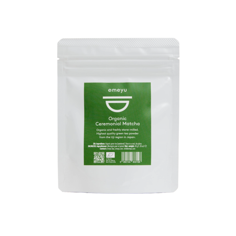 Oplev Emeyu Ceremonial Matcha – økologisk premium matcha fra Uji-regionen i Japan. Den strålende grønne te har en cremet konsistens, mild sødme og en elegant umami-smag helt uden bitterhed. Matcha giver en naturlig energi med ro og fokus, perfekt både som klassisk te og som en silkeblød matcha latte. Et lille hverdagsritual, der gør godt for både krop og sind.