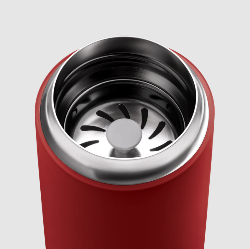 En gennemtænkt to-go kop med splash guard der gør den spildfri.